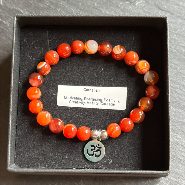 Carnelian is a warm, vibrant coloured crystal that boosts confidence and the power of true expression. It empowers your self-confidence in all aspects of your life especially in relationships. It can boost your self-esteem and stirs passion and inner creativity. It’s a gentle crystal with healing properties that balance the sacral chakra. You can wear it when you want to feel your inner power. It connects you to your true self.